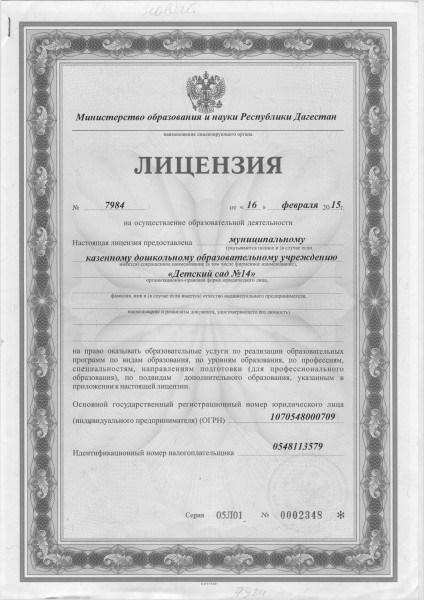 Полное наименование образовательной организации* Муниципальное казенное дошкольное образовательное учреждение "Детский сад №14" г.Избербаша Республики Дагестан